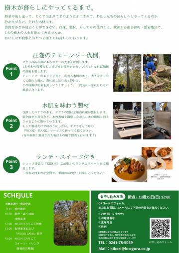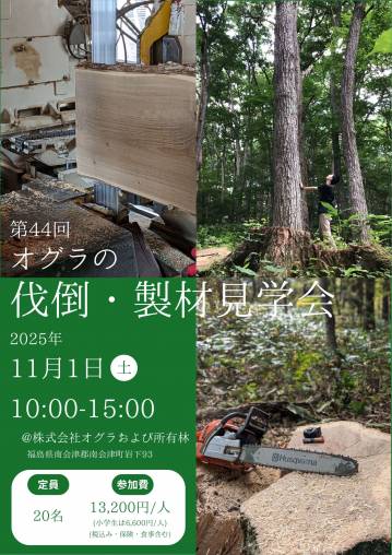 さて、今年の伐倒・製材会も44回目を迎え、日程等もリニューアルしました。日帰りなので参加しやすいと思います。
